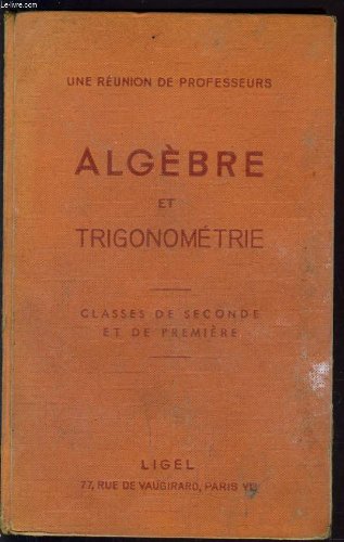 R240027902. ALGEBRE ET TRIGONOMETRIE. CLASSE DE SECONDE ET DE PREMIERE.. 1954. In-8. Cartonné. Etat d'usage, Couv. défraîchie, Dos fané, Intérieur acceptable. 332 pages. Quelques notes sur papier fixées au ruban adhésif.. . . . Classification Dewey : 372.7-Livre scolaire : mathématiques